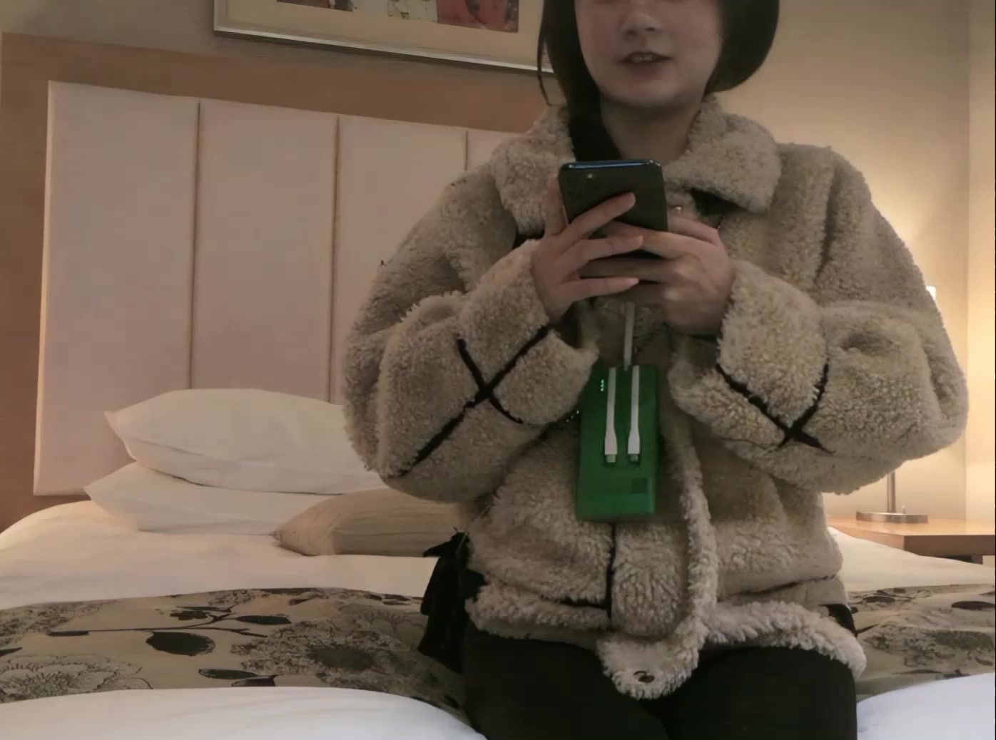宿舍和穿着性感蕾丝情趣内衣样子清纯的女朋友啪啪妹子下面还挺多水