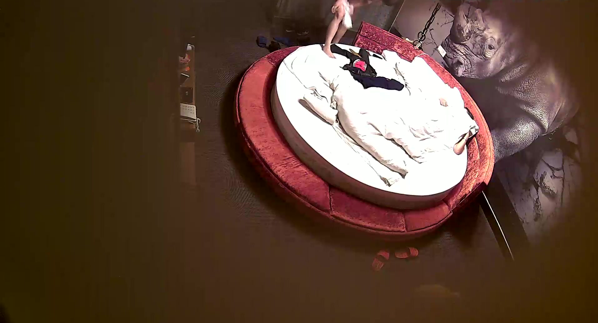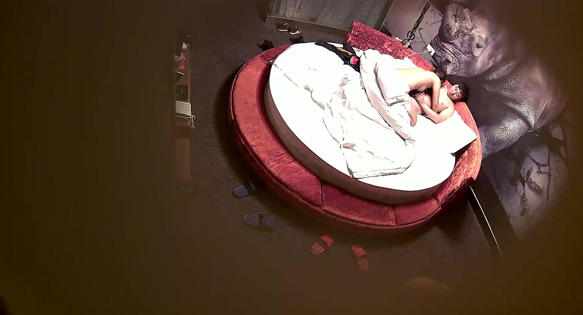 精品酒店大圆床偷拍中年事业男和少妇开房偷情搞完抽口烟