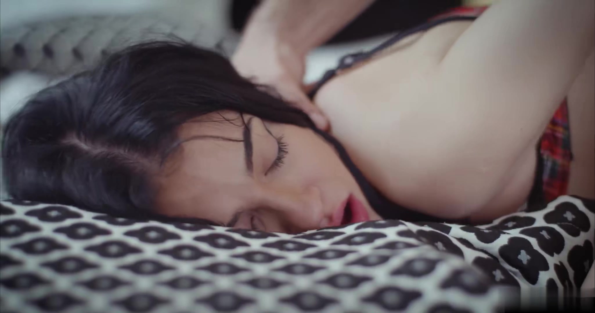 娇小的黑发辣妹得到精液的猛烈注入非常满意