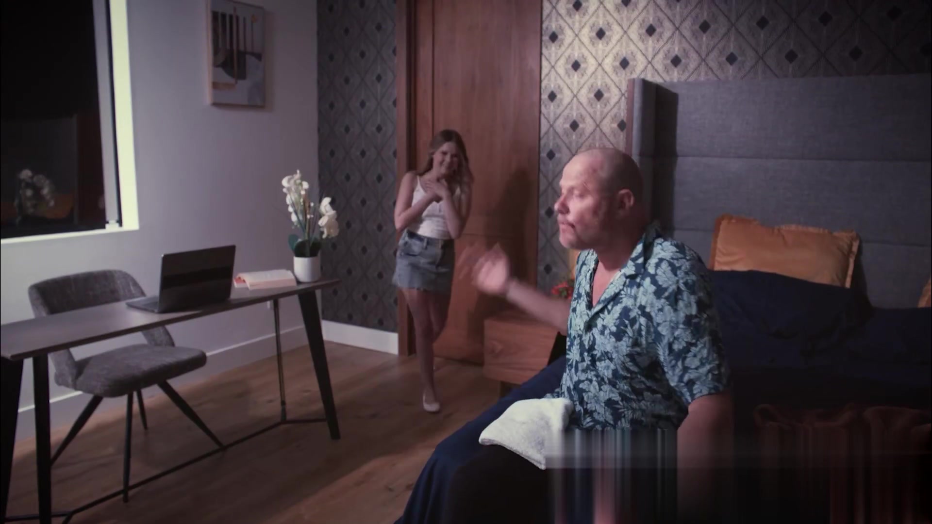 18 岁淫荡女儿在直播中钓到令人饥渴的的老继父后被爆操内射。