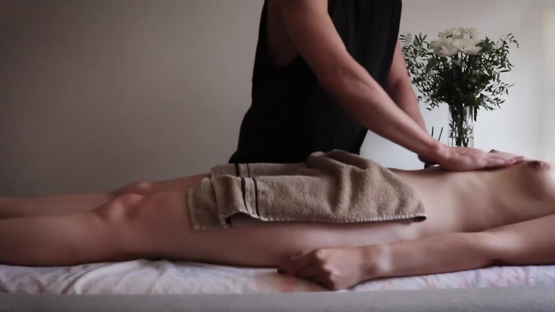 按摩师操了他的淫荡客人 并在她的肚子上射精释放