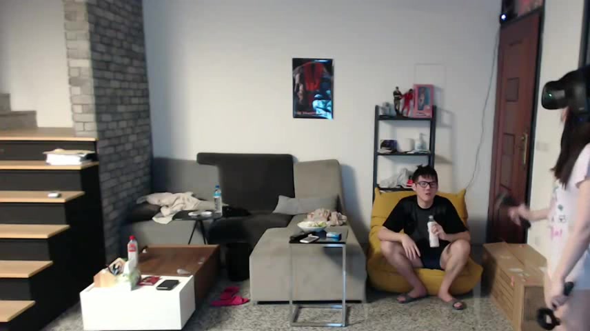 摄像头TP年轻妹子在家不穿内裤和男朋友一起玩虚拟头盔游戏