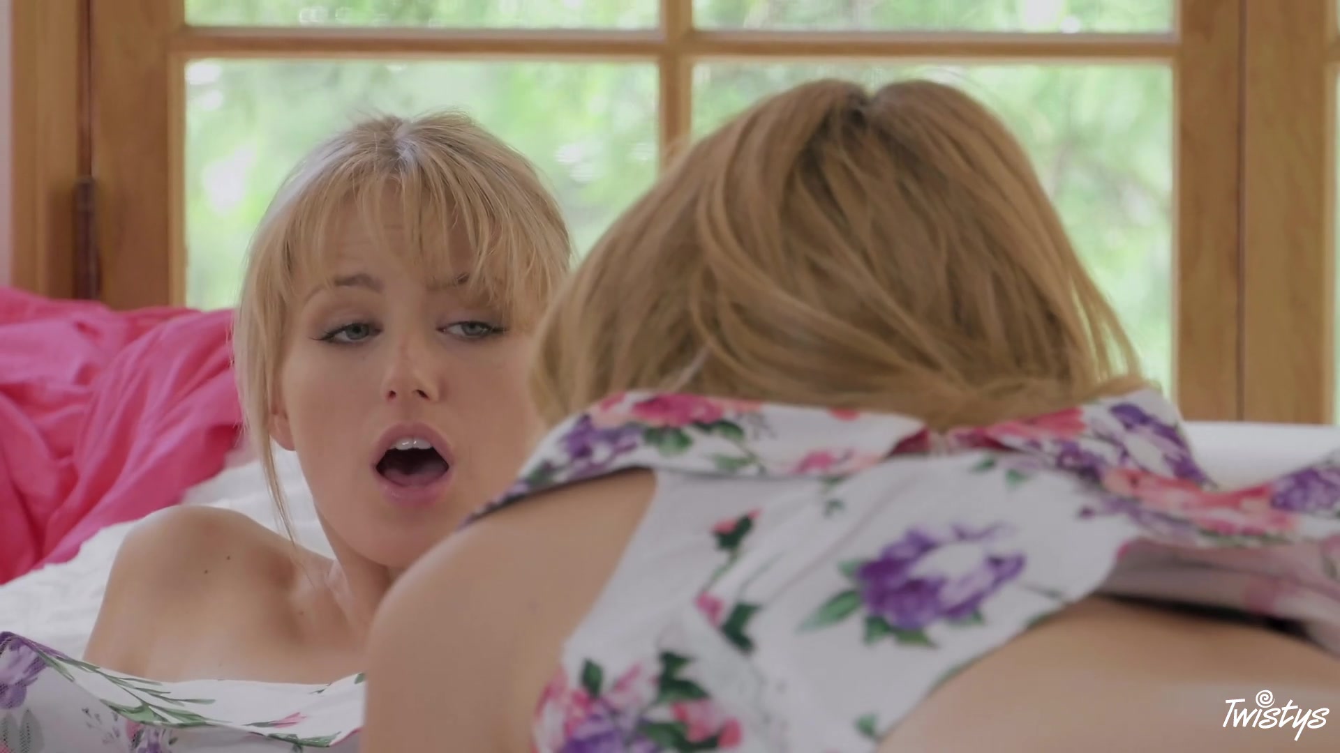 淫荡的金发女孩用闺蜜老公的大鸡巴拉伸小穴