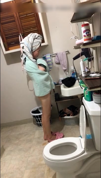 房东浴室偷放摄像头偷窥洗澡的大波妹,妹子貌似很投入