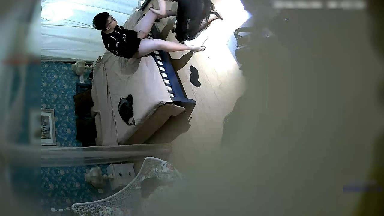 主题店黑色高跟鞋蕾丝连衣裙高雅气质长发美女私会性福眼镜男衣服还没脱就急着吃屌日了2炮美女很激情疯狂