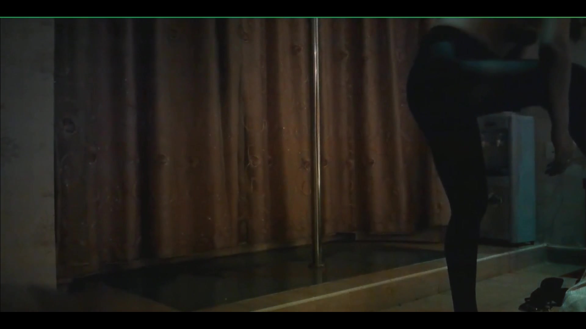 健身女郎黑色连体网袜里油光光的
