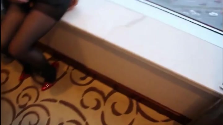 单腿黑丝撩起裙子摸屁股边口交边后入