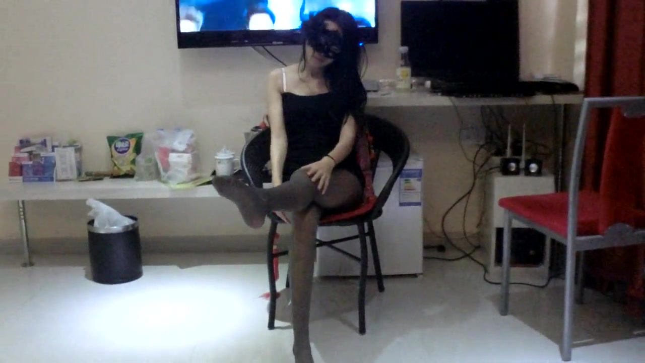 酒店黑色亮片吊带裙肉丝高跟受不了了