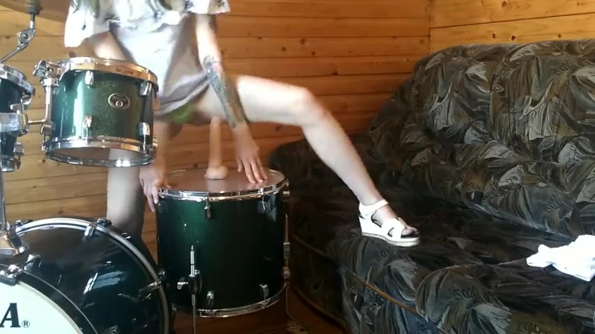 Dildo Riding on DRUMS! Drummer Doesnt know about